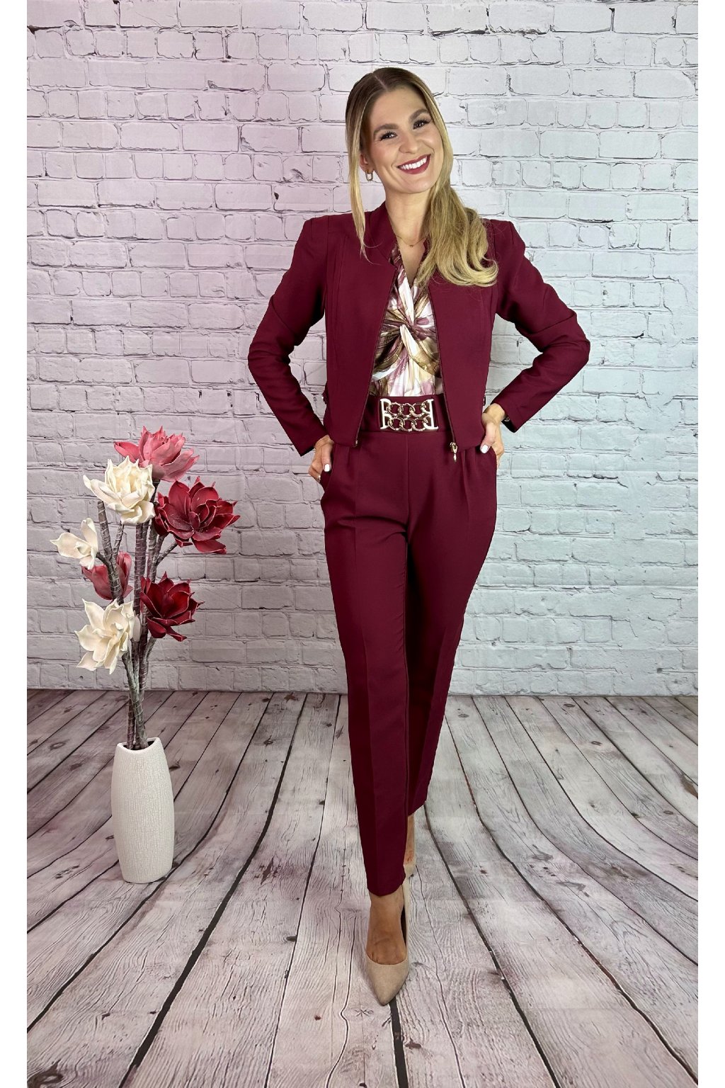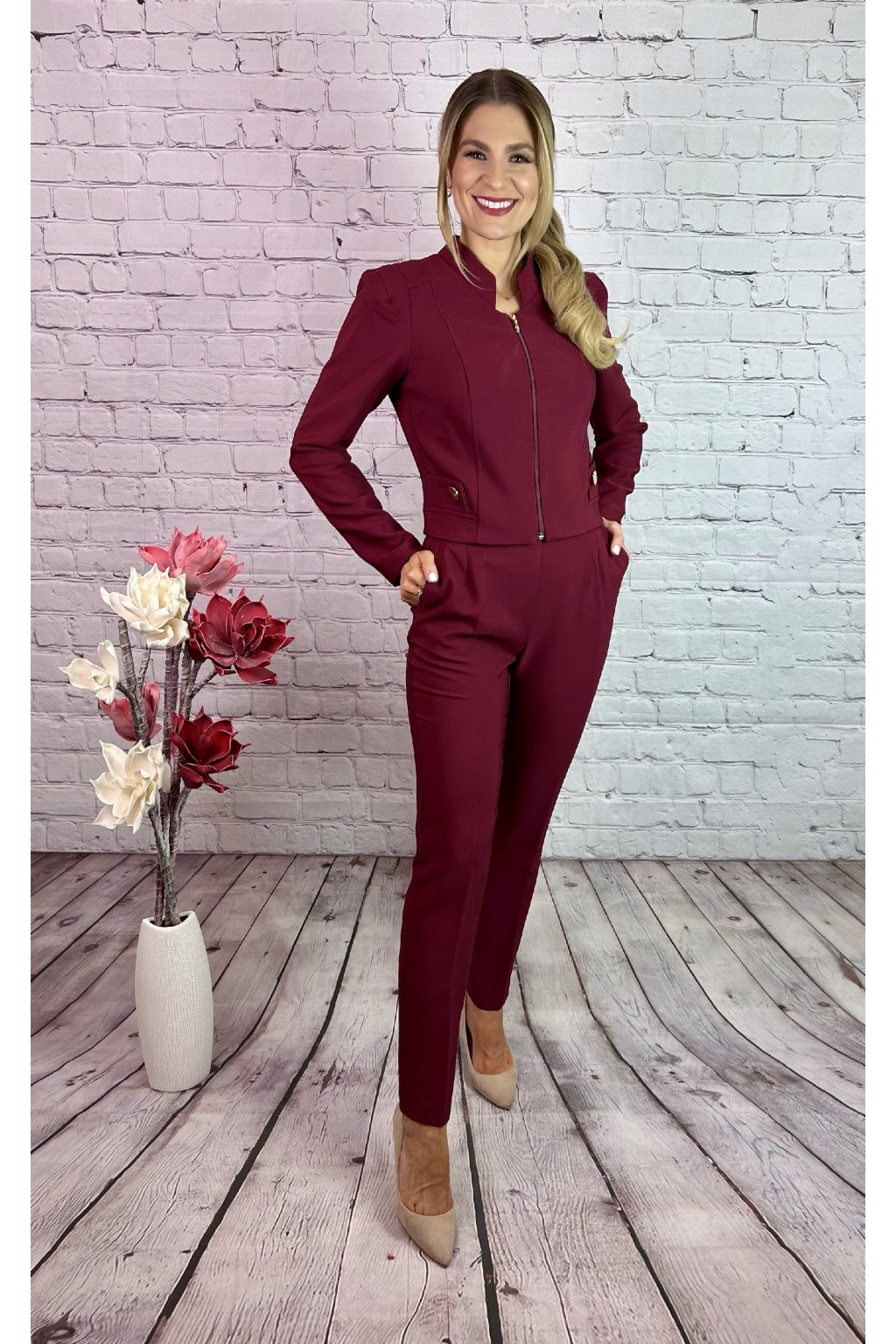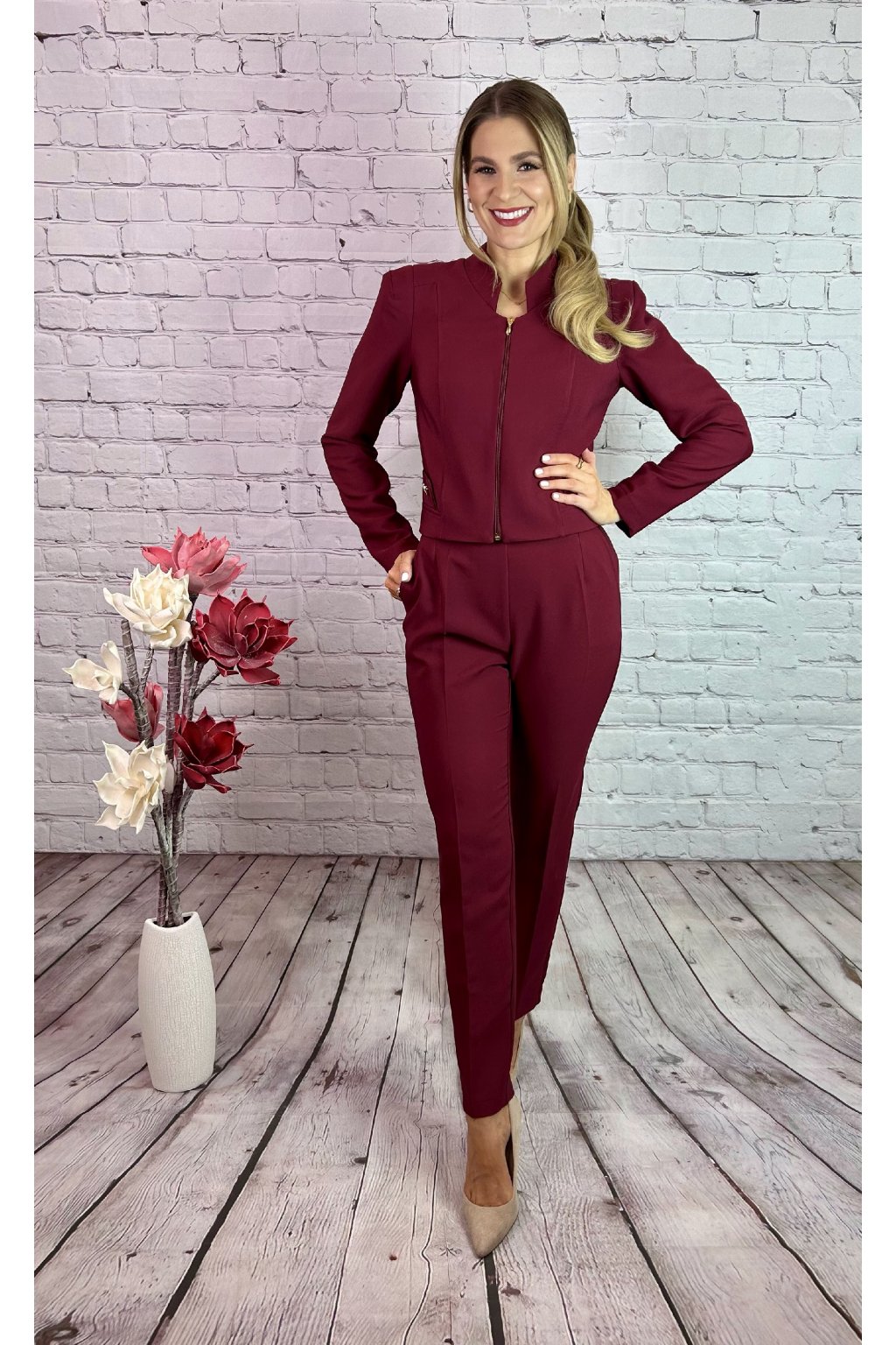 Bordový nohavicový kostým