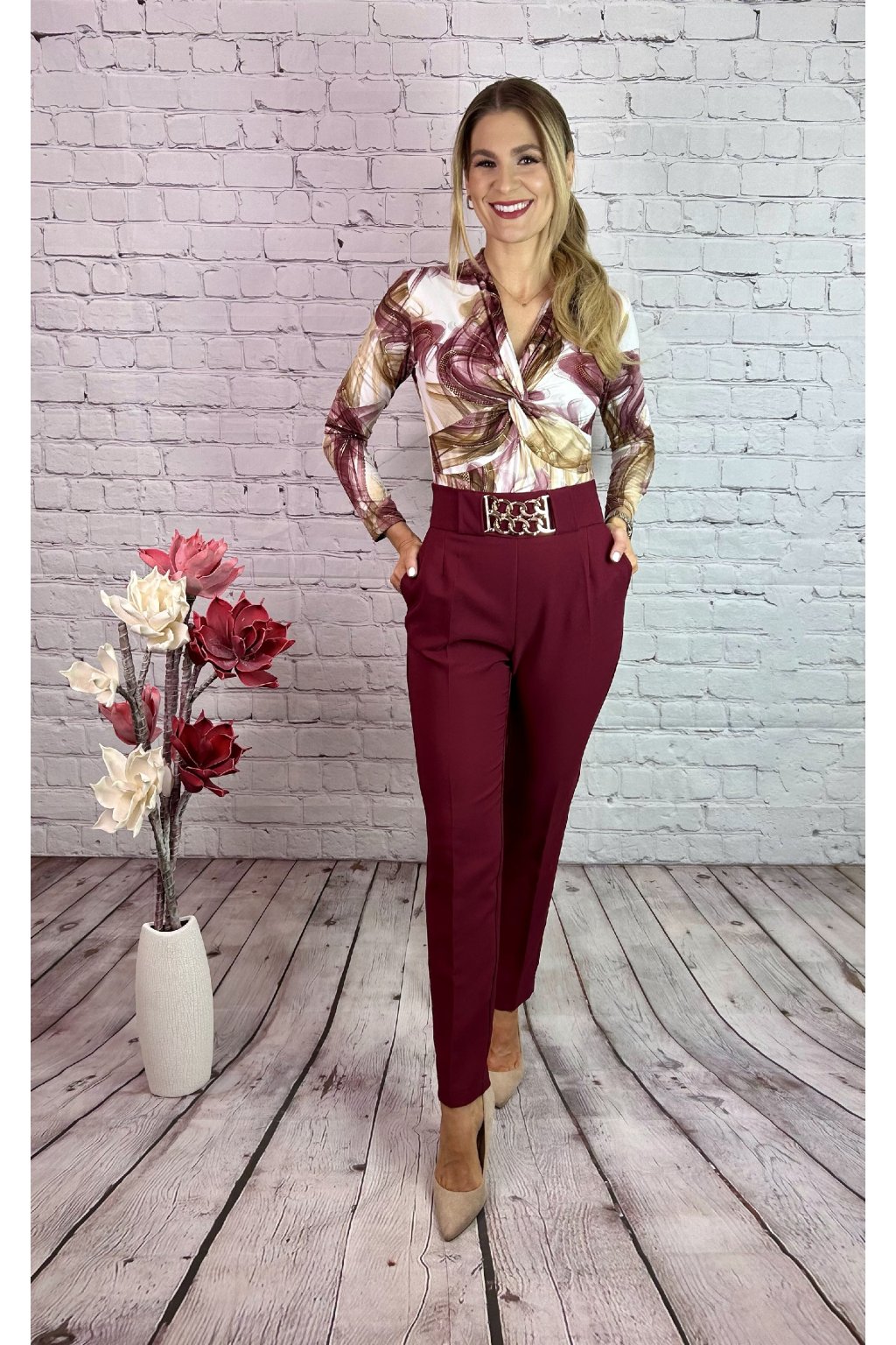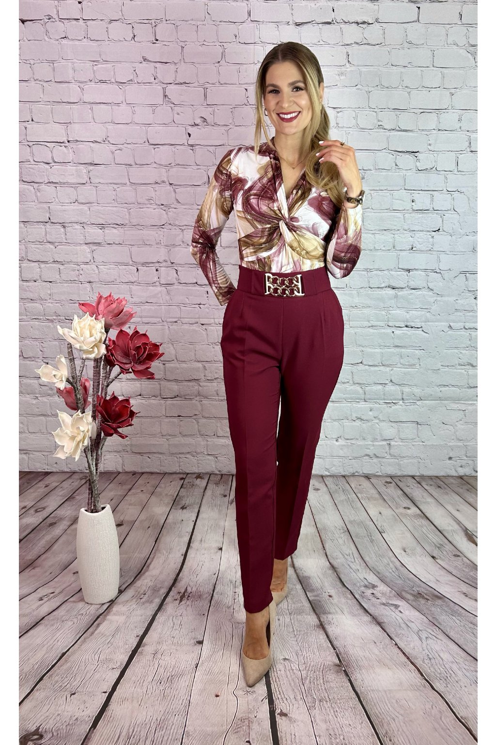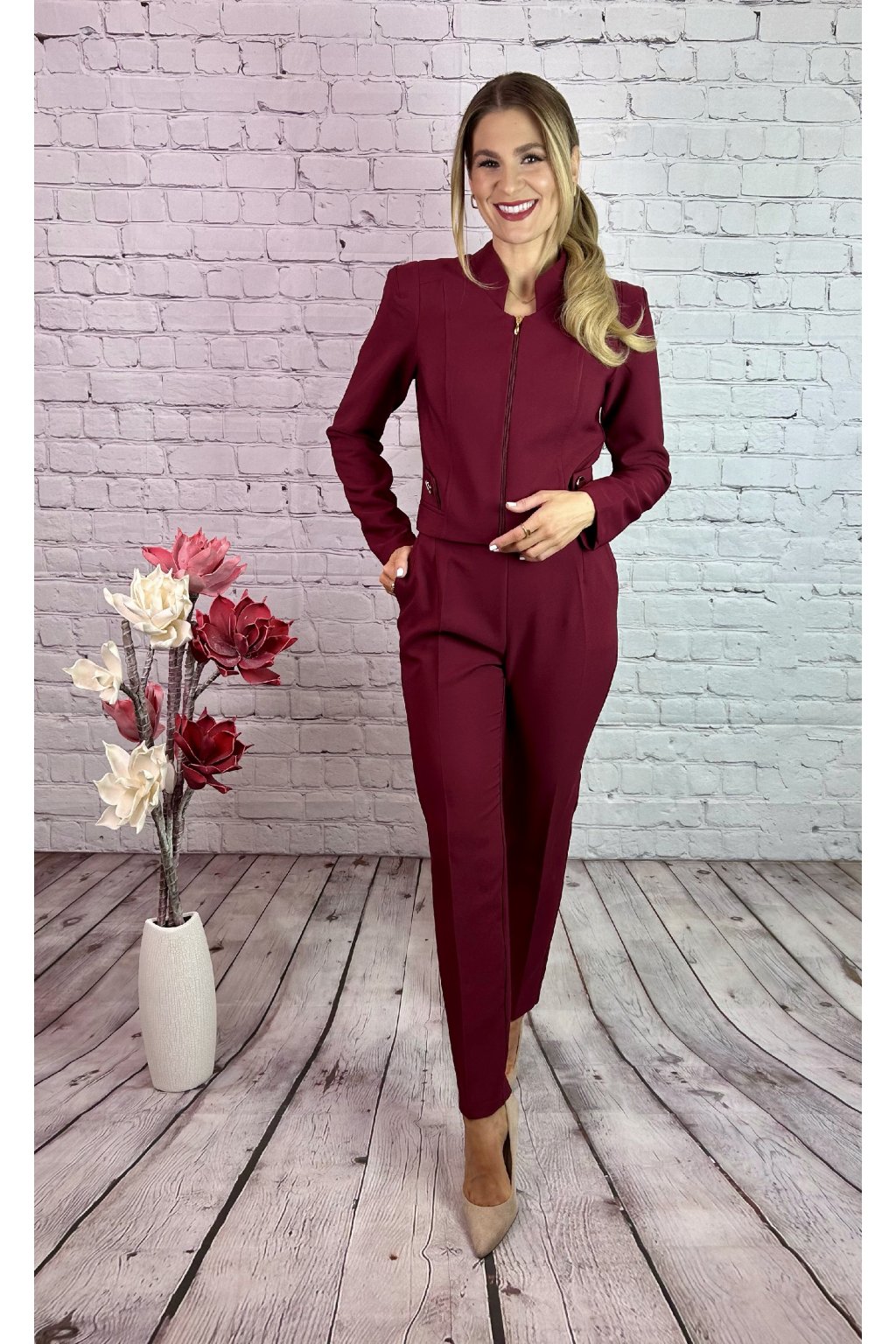 Bordový nohavicový kostým