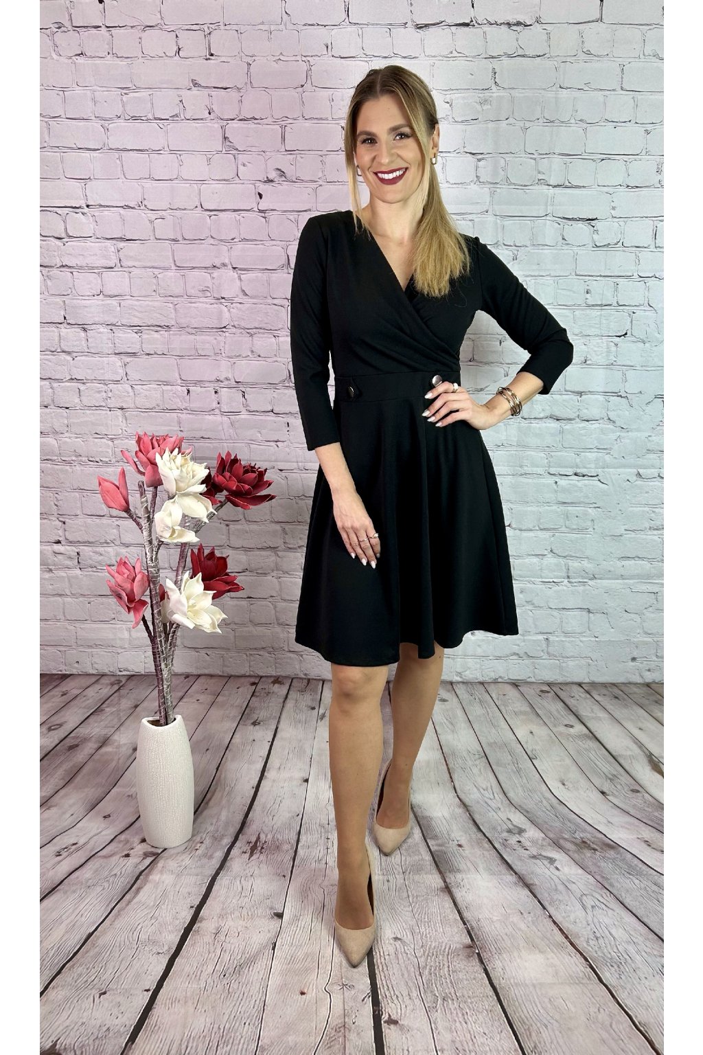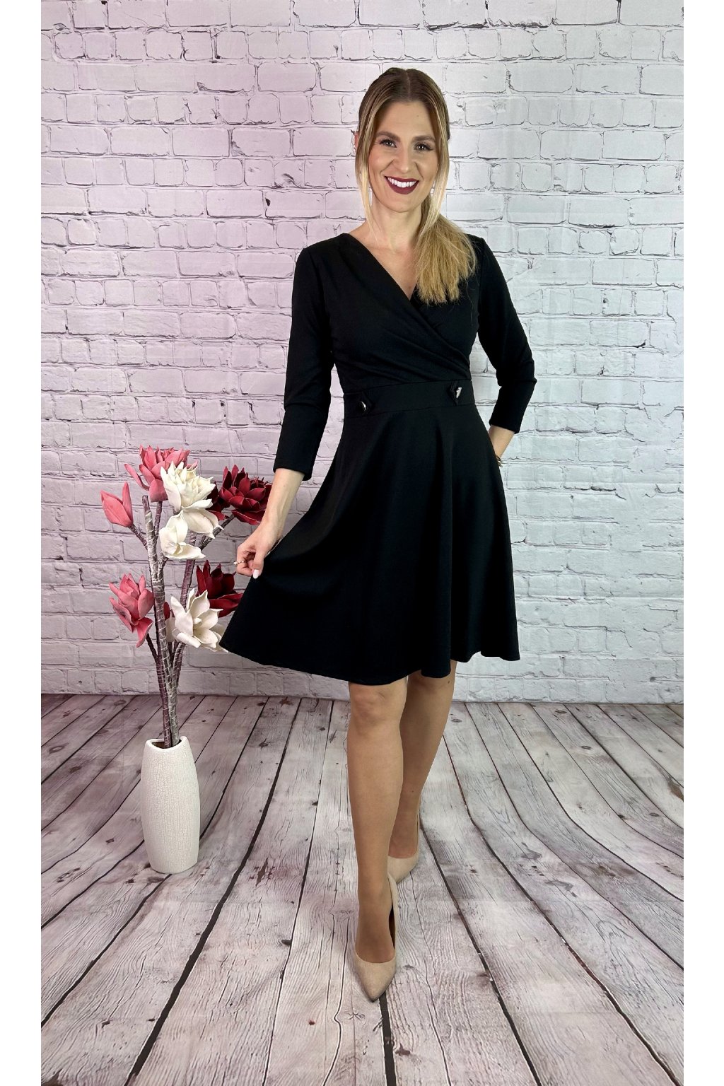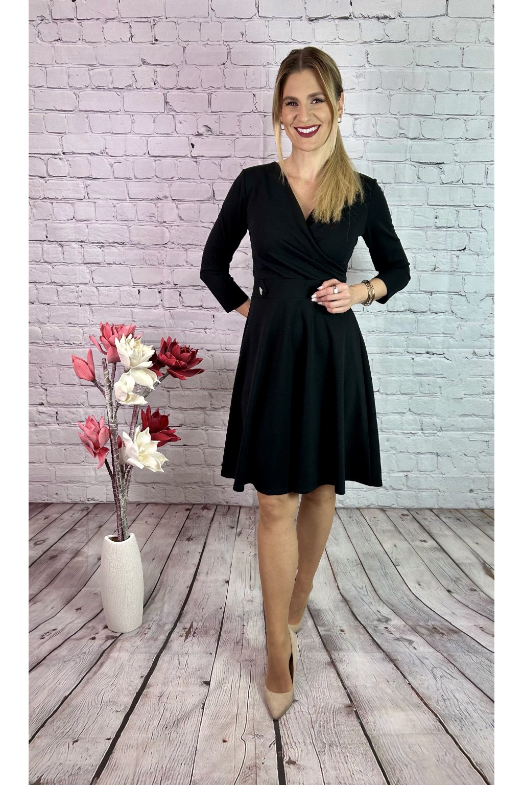 Čierne šaty A-strihu s rukávom, materiál je mierne elastický . Šaty sú vhodné na akúkoľvek príležitosť.