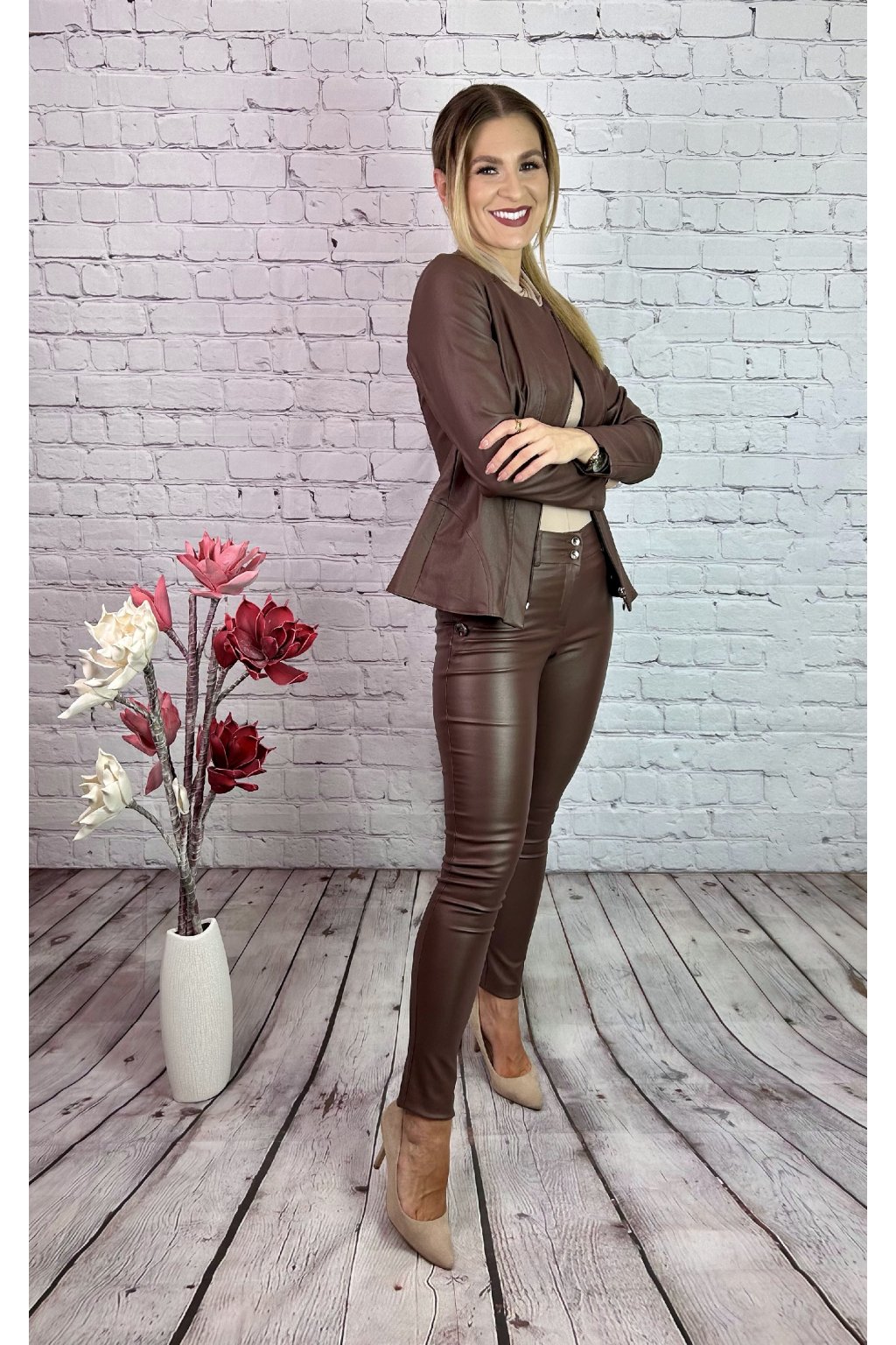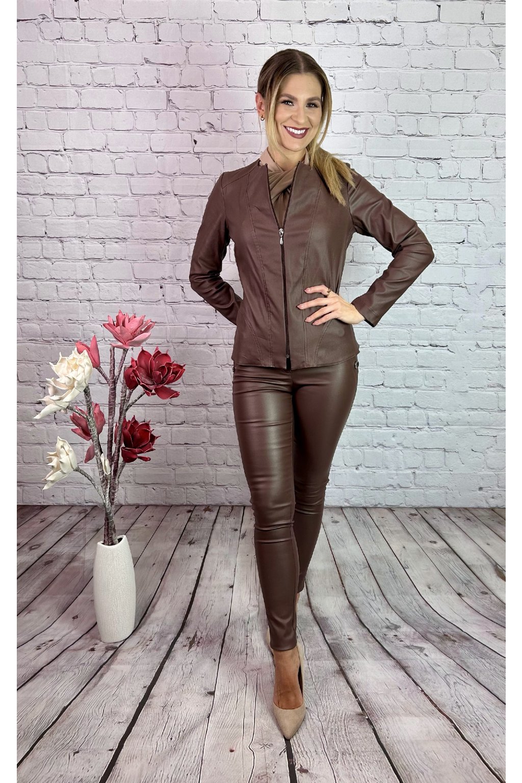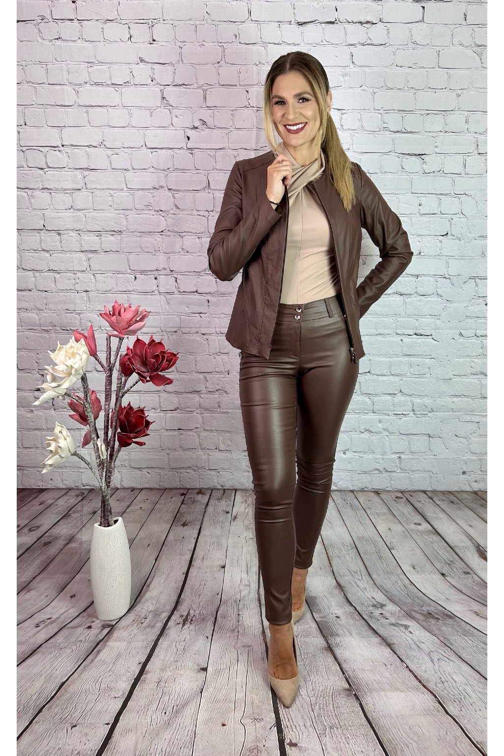 Hnedé koženkové nohavice