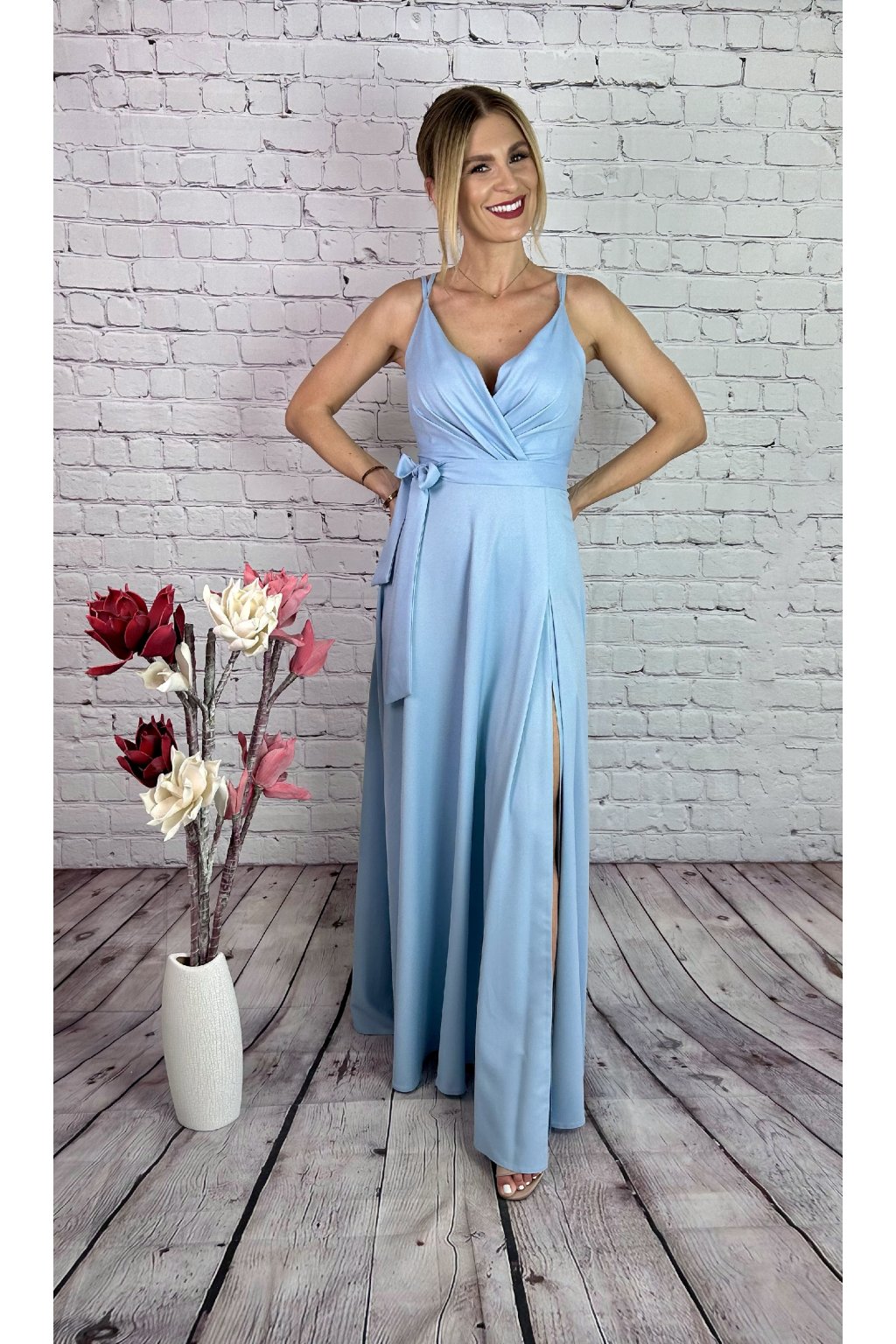 Dlhé šaty na ramienka s viazaním v páse, okúzlia eleganciou, jemnosťou a dokonale zvýraznia siluetu.